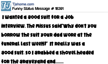 X I wanted a good suit for a job interview. The missus said"Why don't you borrow the suit your dad wore at the funeral last week?" It really was a good suit, so I grabbed a shovel,headed for the graveyard and........