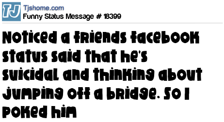 - # 128442 My friends status said, "Suicidal, standing on the edge of a cliff"... So I poked him..