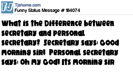X says What is the Difference between secretary and personal secretary?  Secretary says: Good morning sir!  Personal secretary says: Oh my God! Its morning sir