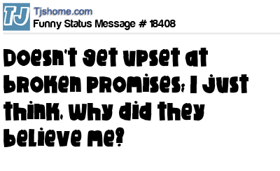 - # 85195 3 things that should never be broken. 1. Hearts 2. Promises 3. Condoms. Sometimes the breaking of # 3 causes 1 & 2 to break.”