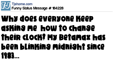 X says Why does everyone keep asking me how to change their clock? My Betamax has been blinking midnight since 1983...