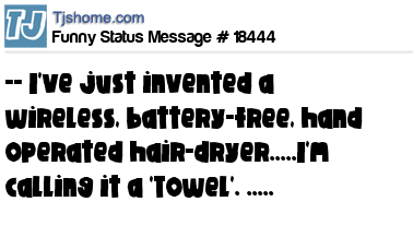 - # 120671 I've just invented a wireless, battery-free, hand operated hair-dryer.....I think I'll call it a 'Towel'.