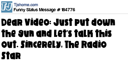 X says Dear Video: Just put down the gun and let's talk this out. Sincerely, The Radio Star