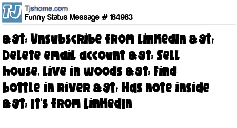 X says > Unsubscribe from LinkedIn > Delete email account > Sell house, live in woods > Find bottle in river > Has note inside > It's from LinkedIn