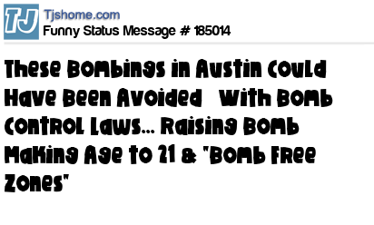 X says These Bombings in Austin Could Have Been Avoided With Bomb Control Laws... Raising Bomb Making Age to 21 & "Bomb Free Zones"