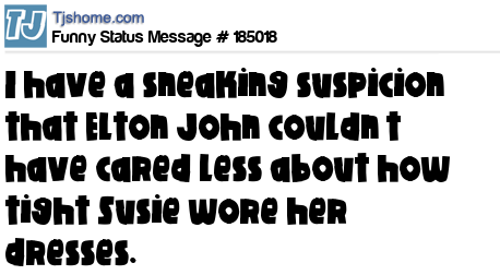 X says I have a sneaking suspicion that Elton John couldn’t have cared less about how tight Susie wore her dresses.