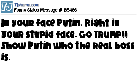 X says In your face Putin. Right in your stupid face. Go Trump!! Show Putin who the real boss is.