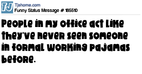 X says People in my office act like they've never seen someone in formal working pajamas before.