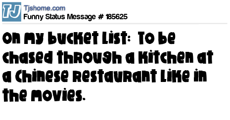 - # 205237 On my bucket list: To be chased through a kitchen at a Chinese restaurant like in the movies.