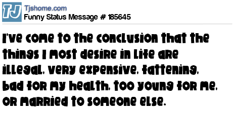 - # 76313 Pretty much all of the desirable things in life are either illegal, expensive, fattening or married to someone else.