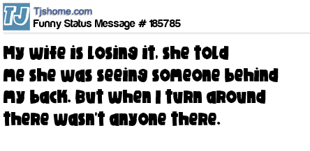 X is My wife is losing it, she told me she was seeing someone behind my back. But when I turn around there wasn't anyone there.