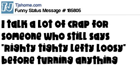 - # 126986 It's kinda sad that I'm 46 and I still need to say "righty tighty,, lefty loosey" when I fix things.