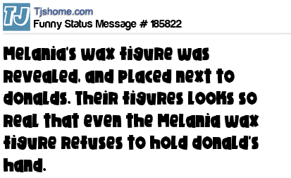 X is Melania's wax figure was revealed, and placed next to donalds. Their figures looks so real that even the Melania wax figure refuses to hold donald's hand.