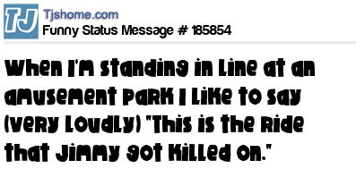 X says When I'm standing in line at an amusement park I like to say (very loudly) "This is the ride that Jimmy got killed on."