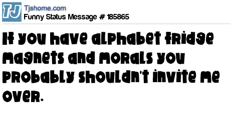 X says If you have alphabet fridge magnets and morals you probably shouldn't invite me over.