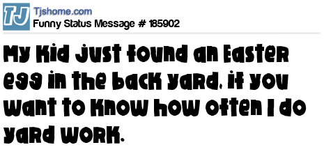 X says My kid just found an Easter egg in the back yard, if you want to know how often I do yard work.