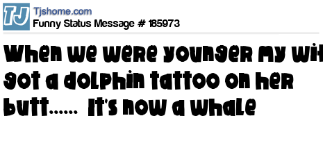 - # 106007 That dolphin tattoo on your ass was SO hot when you were 18, Now it looks like a used condom!