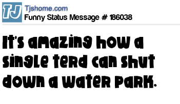 - # 133878 If you're feeling powerless just remember a single one of your turds can shut down an entire water park.