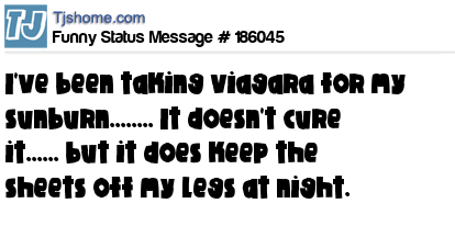 - # 187680 Taking viagra for my sunburn.... Doesn't cure it but it keeps the sheets off of my legs at night!