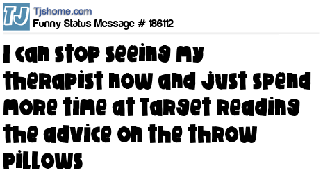 X says I can stop seeing my therapist now and just spend more time at Target reading the advice on the throw pillows