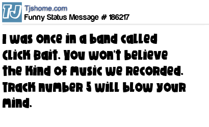 - # 178032 I was in a band called Click Bait. You won't believe the kind of music we recorded... Track number 5 will blow your mind.