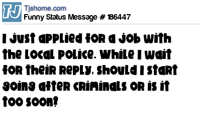 X says I just applied for a job with the local police. While I wait for their reply, should I start going after criminals or is it too soon?