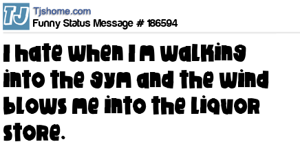 X says I hate when I’m walking into the gym and the wind blows me into the liquor store.