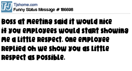 X is Boss at meeting said it would nice if you employees would start showing me a little respect. One employee replied oh we show you as little respect as possible.