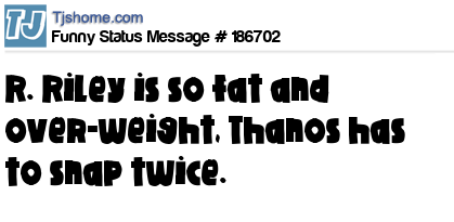 X is R. Riley is so fat and over-weight, Thanos has to snap twice.
