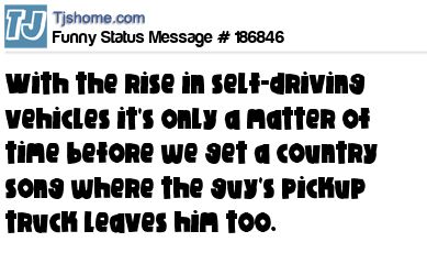 - # 178752 With the rise in self-driving vehicles, eventually there will a Country and Western song about your truck leaving you too.