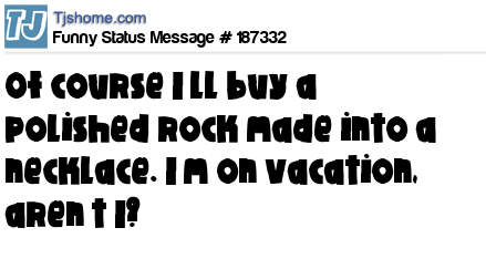 X says Of course I’ll buy a polished rock made into a necklace. I’m on vacation, aren’t I?