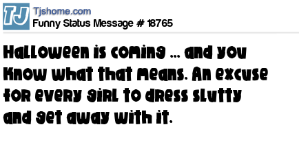 - # 7923 Halloween is coming… and you know what that means. An excuse for every girl to dress slutty and get away with it.