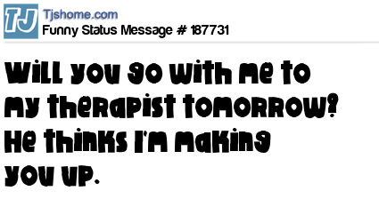 - # 206652 Will one of you go with me to my therapist tomorrow? He thinks I'm making you up.