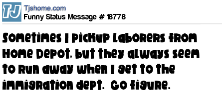 - # 3233 Sometimes I go down to the Home Depot and pick up day laborers in my truck just to have people to drink with. Hop in, amigos. It's Miller time.