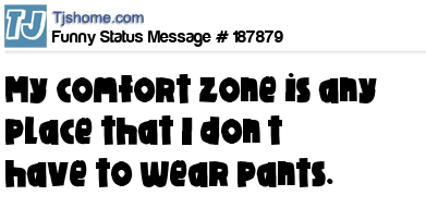X says My comfort zone is any place that I don’t have to wear pants.