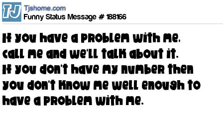 - # 125166 if you have a problem with me, call me and we can talk, if you don't have my number, you don't know me well enough to have a problem with me...