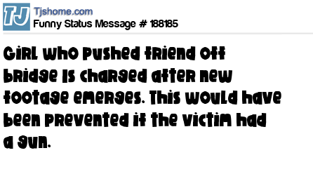 X is Girl who pushed friend off bridge Is charged after new footage emerges. This would have been prevented if the victim had a gun.