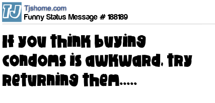 - # 196265 Hey if you think buying condoms is awkward, try returning them.