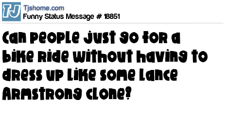 X Can people just go for a bike ride without having to dress up like some Lance Armstrong clone?