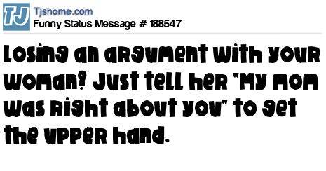 X says Losing an argument with your woman? Just tell her "My mom was right about you" to get the upper hand.