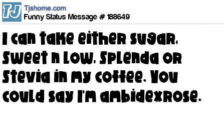 - # 179221 I can take either Sugar, Sweet n Low, or Splenda in my coffee. You could say I'm ambidexrose.