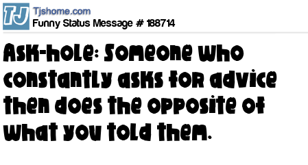 - # 107335 So I made up a new word: Ask-hole; someone who constantly asks for your advise then does the opposite of what you told them.