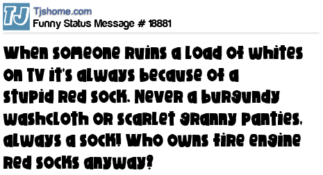 X When someone ruins a load of whites on TV it's always because of a stupid red sock. Never a burgundy washcloth or scarlet granny panties, always a sock! Who owns fire engine red socks anyway?