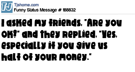 X I asked my friends, "Are you Ok?" and they replied, "Yes, especially if you give us half of your money."