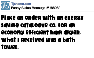 X is Place an order with an energy saving catalogue co. for an economy efficient hair dryer. What I received was a bath towel.