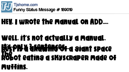 - # 111809 HEY,, I wrote the manual on ADD.. Well, it's 3 sentences,,,, The rest is a drawing of a giant space robot eating a skyscraper made of muffins.
