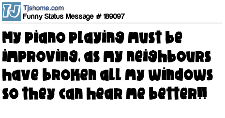 X is My piano playing must be improving, as my neighbours have broken all my windows so they can hear me better!!