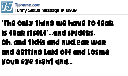 X says "The only thing we have to fear, is fear itself"...and spiders. Oh, and ticks and nuclear war and getting laid off and losing your eye sight and...