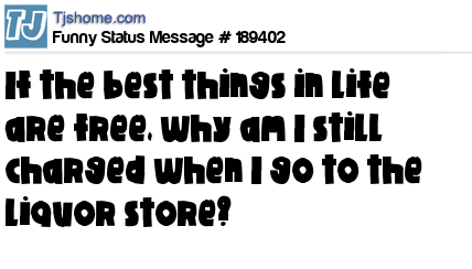 - # 160961 If the best things in life really are free, why am I still getting charged at the liquor store? I call bull crap..