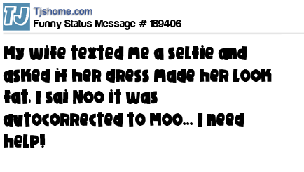 - # 173232 Wife sent me a pic of her new outfit and asked me "if it made her look big?" I texted her back "Nooo" Obviously...but it got auto-corrected to "Moo"
